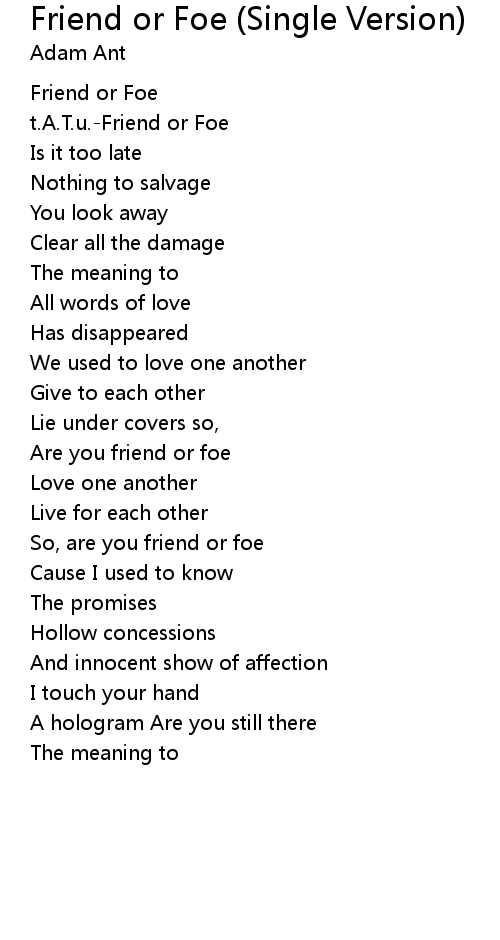 | Are you friend or foe | |