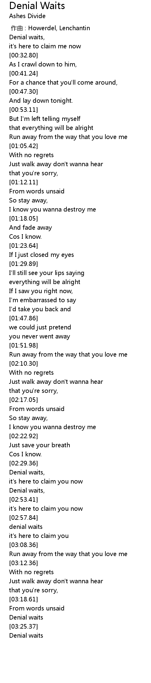 | [03:03.70] | denial waits |