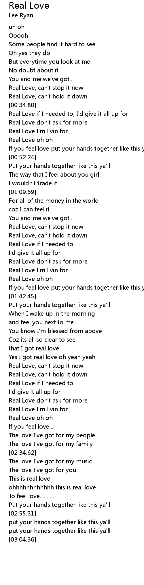 | [00:32.80] | Real Love, can't hold it down |