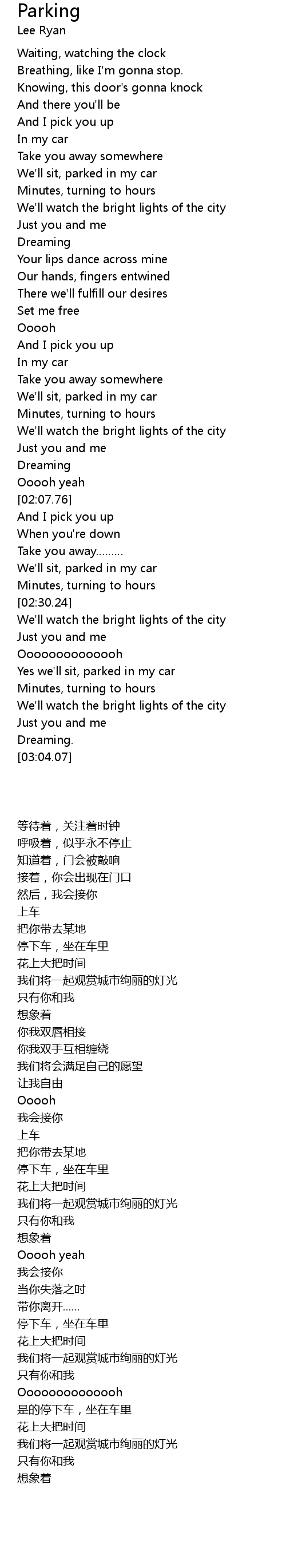 | [02:22.00] | 停下车,坐在车里 |