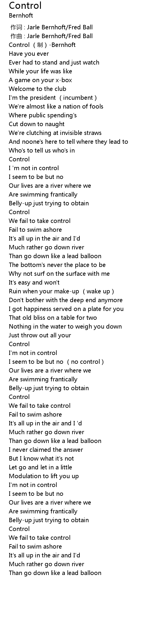 | [00:00.00] | Control (制)-Bernhoft |