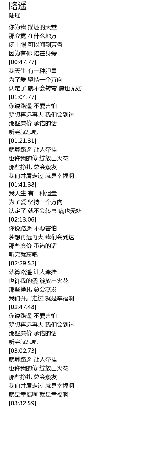 | [01:06.89] | 你说路遥 不要害怕 |