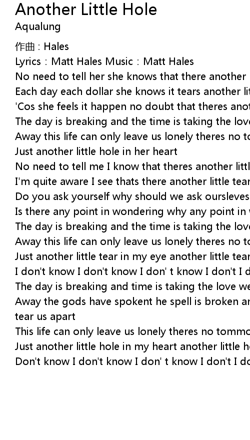 | 'Cos she feels it happen no doubt that theres another little hole in her heart | |
