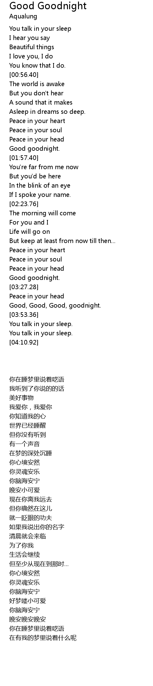| [03:38.35] | Good, Good, Good, goodnight. |
