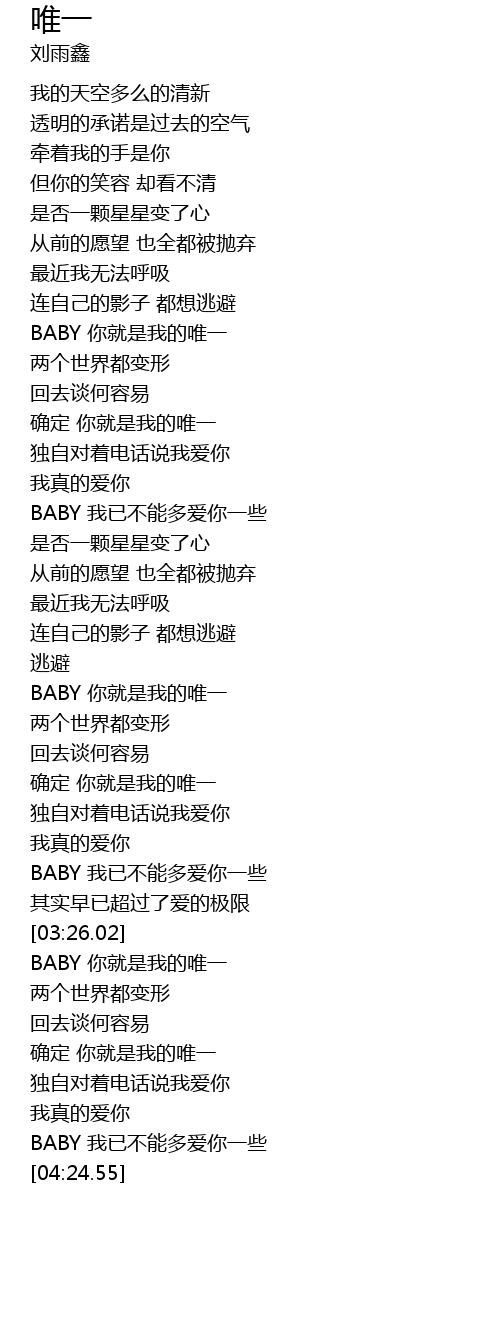 | [03:48.29] | BABY nǐ jiù shì wǒ de wéi yī |