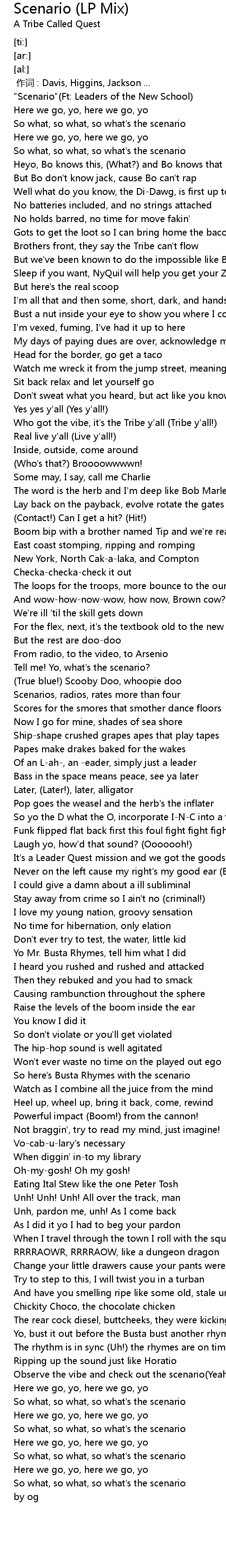 | [00:00.00] | " Scenario" Ft: Leaders of the New School |