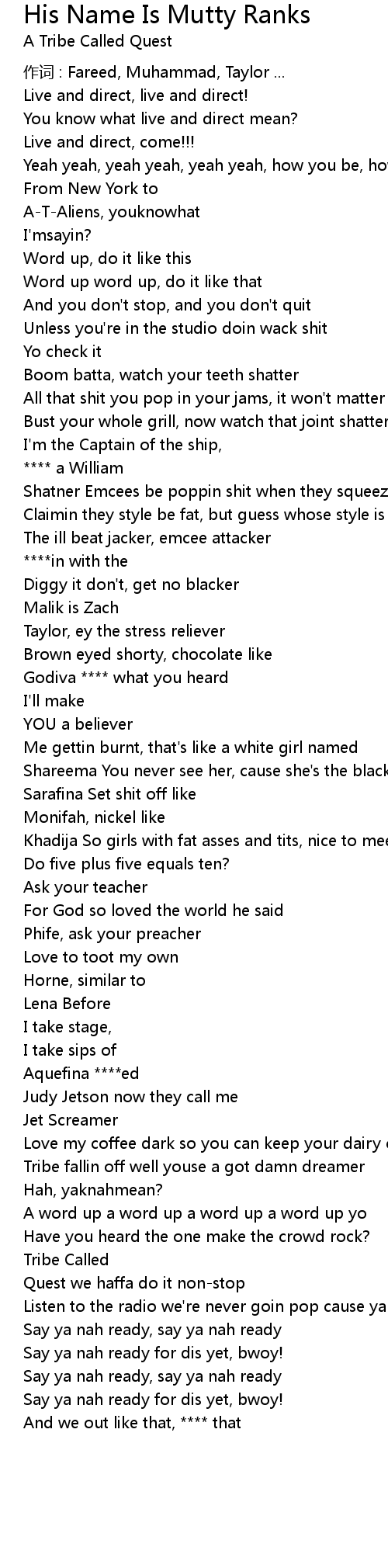 | 歌曲 | His Name Is Mutty Ranks |