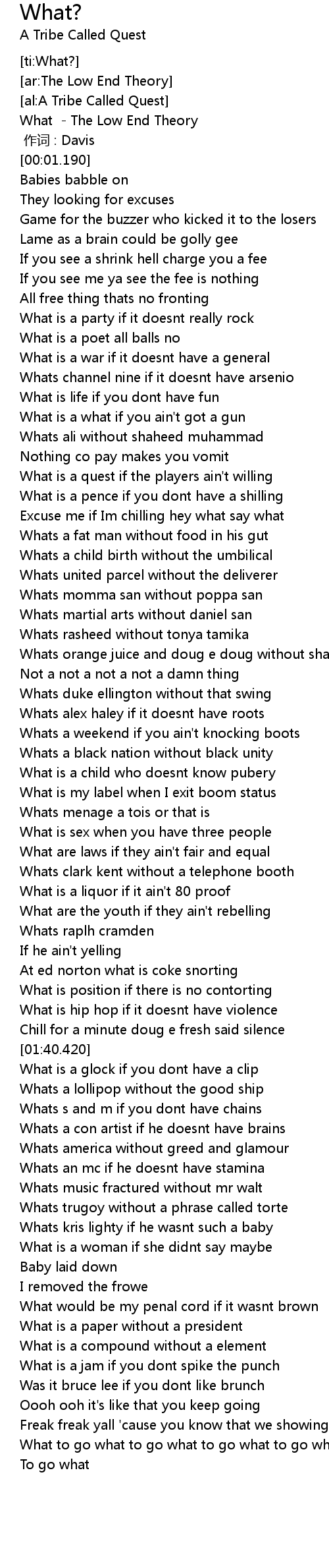 | [00:59.110] | Whats orange juice and doug e doug without shaniqua |