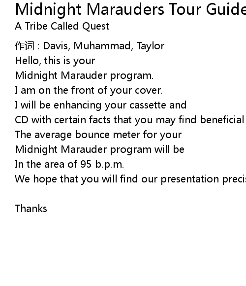 | 歌曲 | Midnight Marauders Tour Guide |