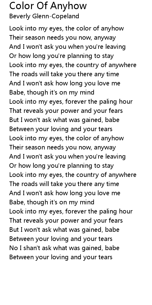 Look into my eyes, the color of anyhow |