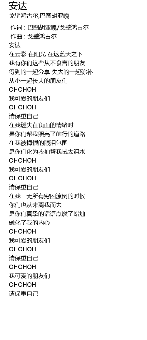 | [00:00.000] | 作词 : 巴图胡亚嘎/戈壁鸿古尔 |