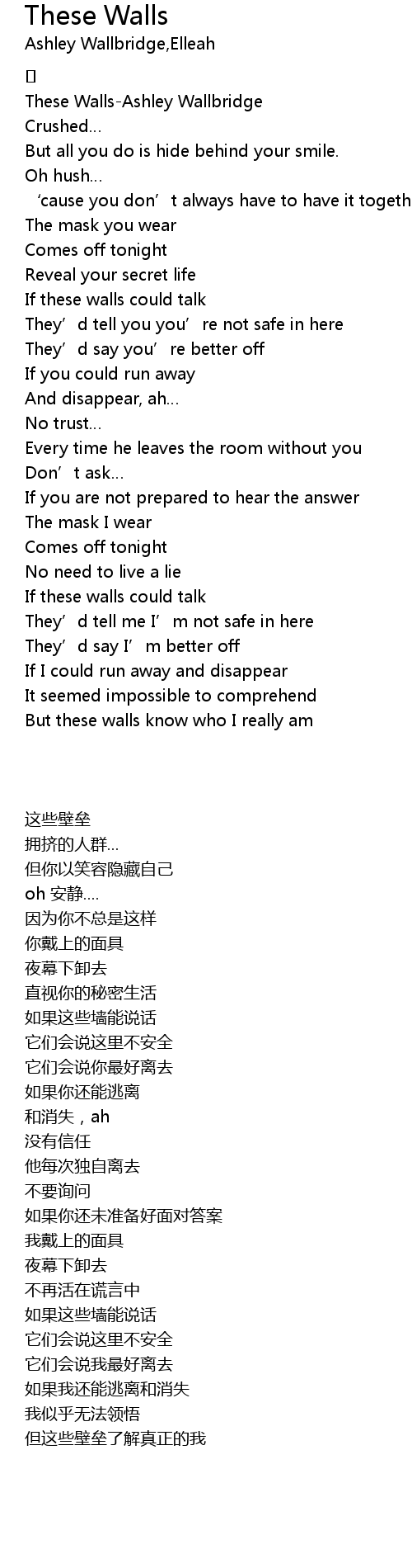 | [00:13.696] | These Walls-Ashley Wallbridge |