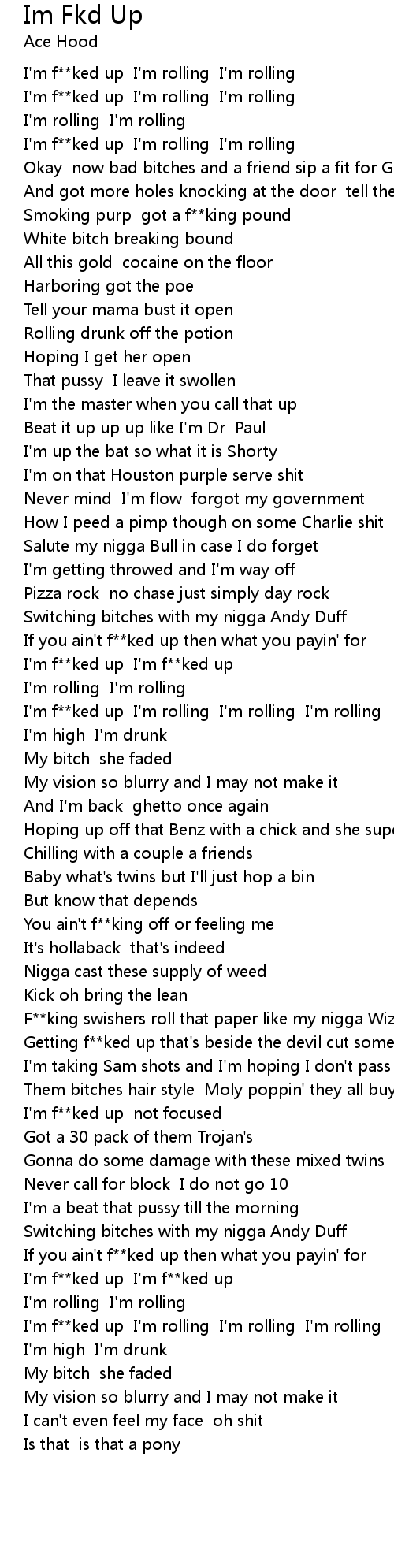 I'm f**ked up I'm rolling I'm rolling I'm rolling |
