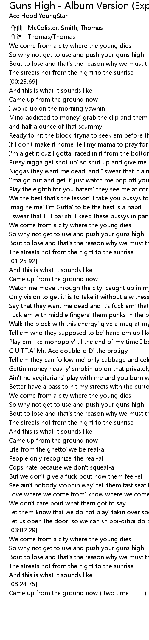 | [00:51.56] | Pussy nigga get shot up' so shut up and give me props |