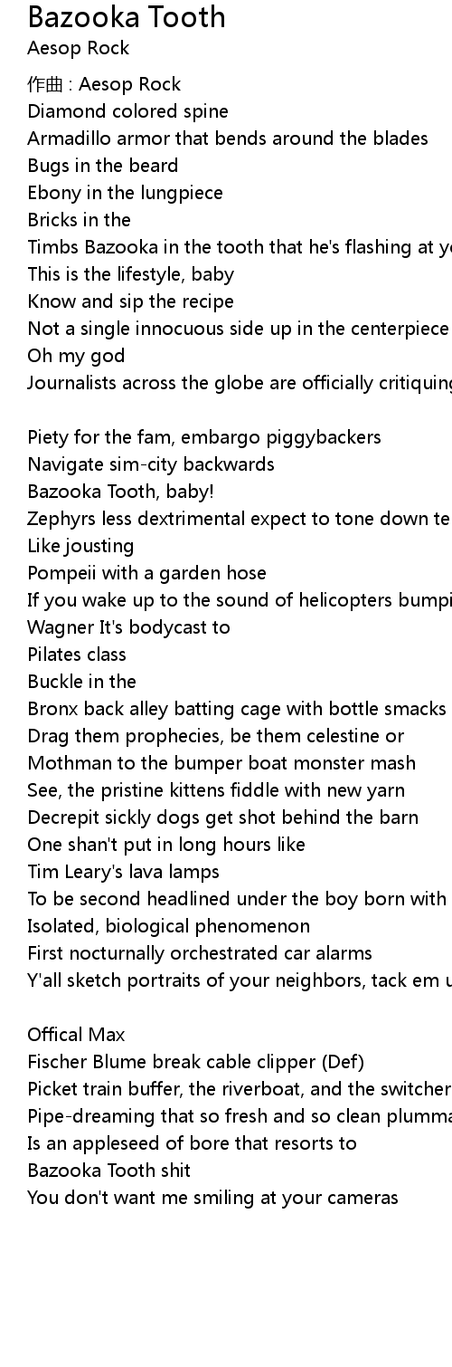 | Timbs Bazooka in the tooth that he' s flashing at your friends | |