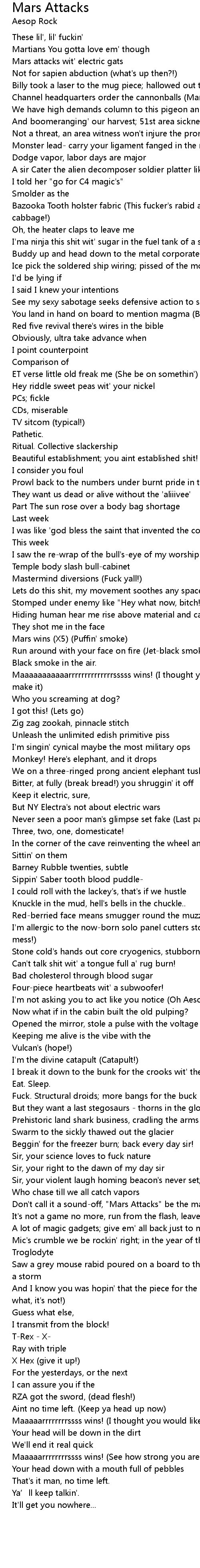 | Don' t call it a soundoff, " Mars Attacks" be the malarkey downfall | |
