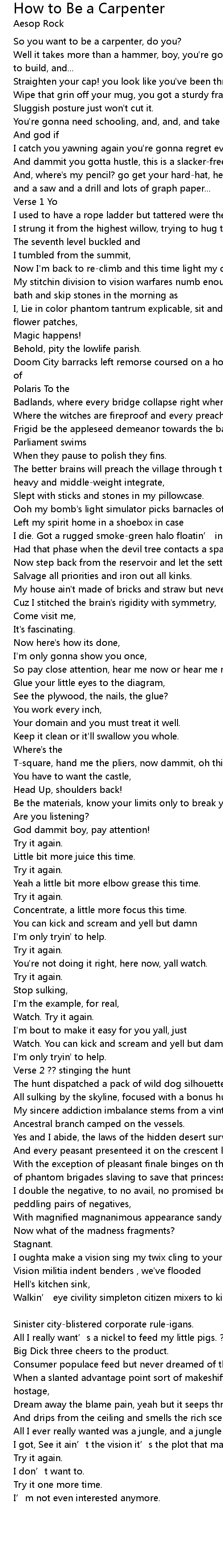 | 歌曲 | How to Be a Carpenter |