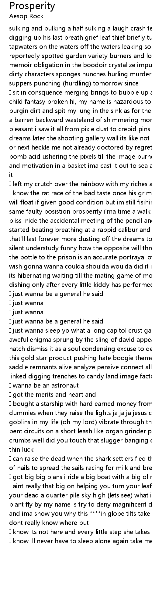 I know the rat race of the bad taste once his grimmace cringes an iron butterfly will float if given good condition but im still fisihing the same worm from the same faulty posistion prosperity i'ma time a walk a walk alone and miss the bliss inide the accidental meeting of the pencil and the ceiling and the central started beating breathing at a rappid calibur and that all for a lotta glory that'll last forever more dusting off the dreams to be an autopilot still a silent understudy funny how the opposite will throttle and the difference from the bottle to the prison is an accurate portrayal of an addequate betrayal of a wish gonna wanna coulda shoulda woulda did it isnt it amusing choosing in a plan its hibernating waiting till the mating game of motivation took a fine posistion dishing only after every little kiddy has performed |