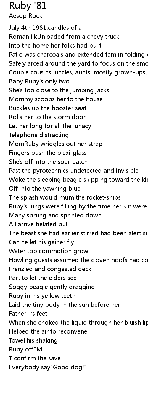 | Ruby' s lungs were filling by the time her kin were cognizant | |