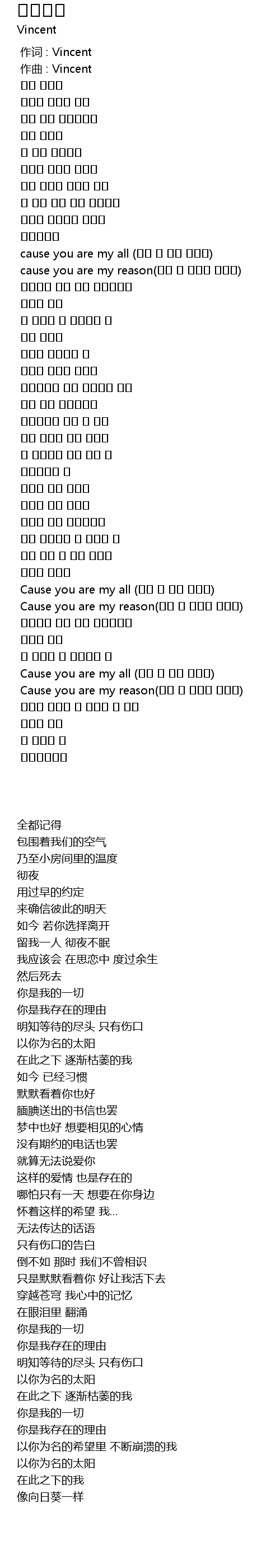 | [03:36.721] | Cause you are my all (너는 내 모든 것이야) |