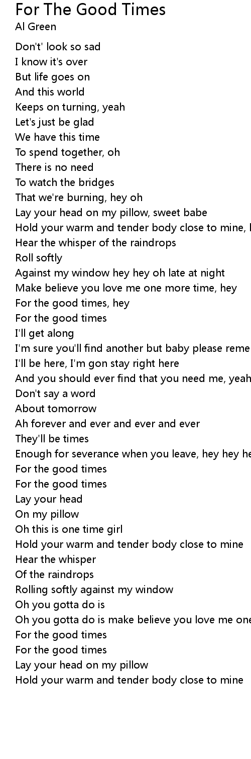 For the good times, hey |