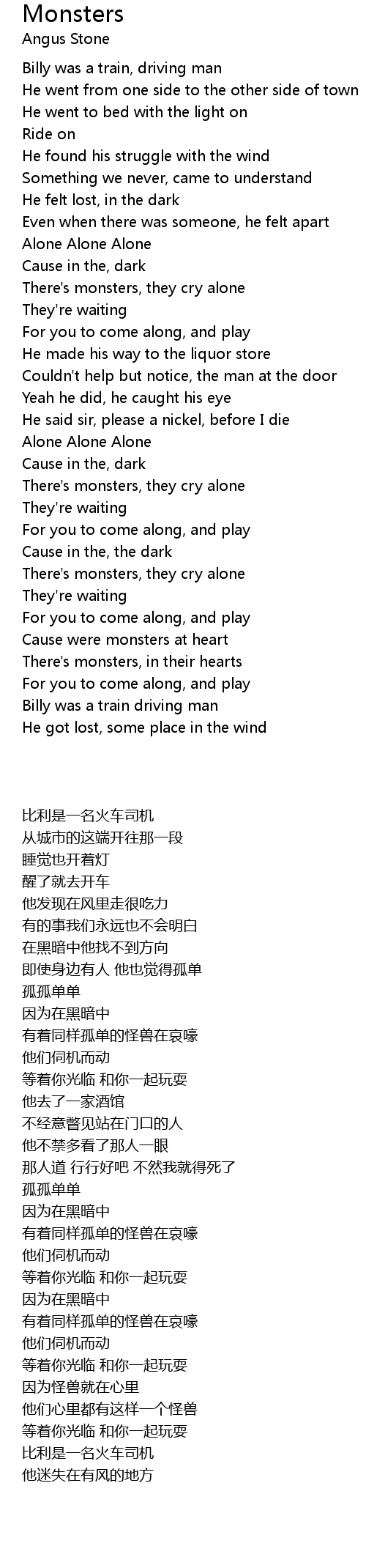 There's monsters, they cry alone |