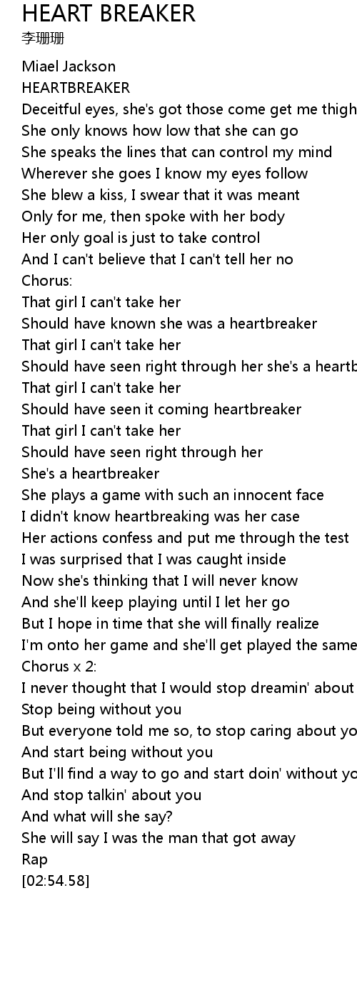 | [00:47.54] | Should have known she was a heartbreaker |