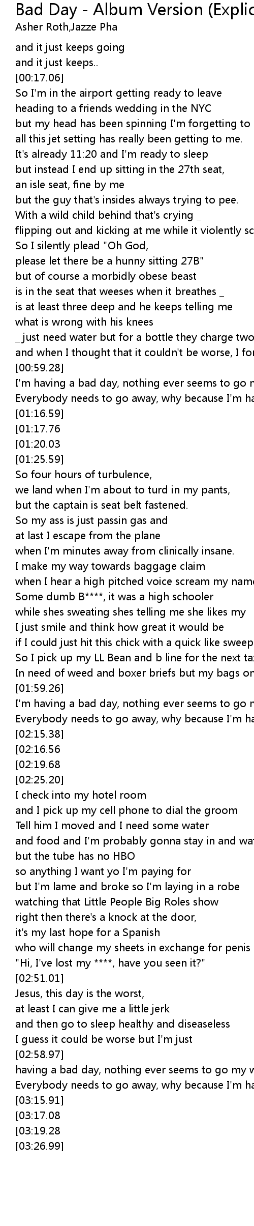 Everybody needs to go away, why because I'm having a bad day. |