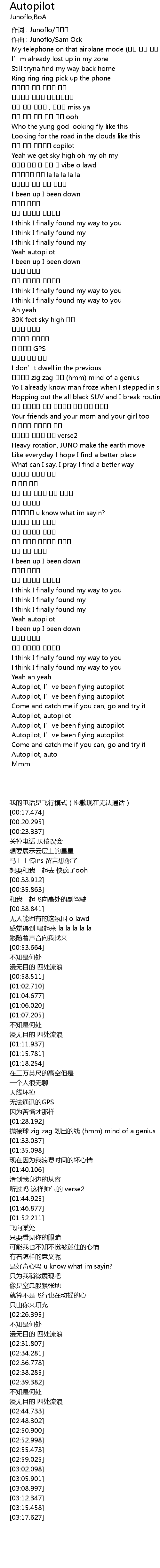 | [03:05.901] | Autopilot, I' ve been flying autopilot |