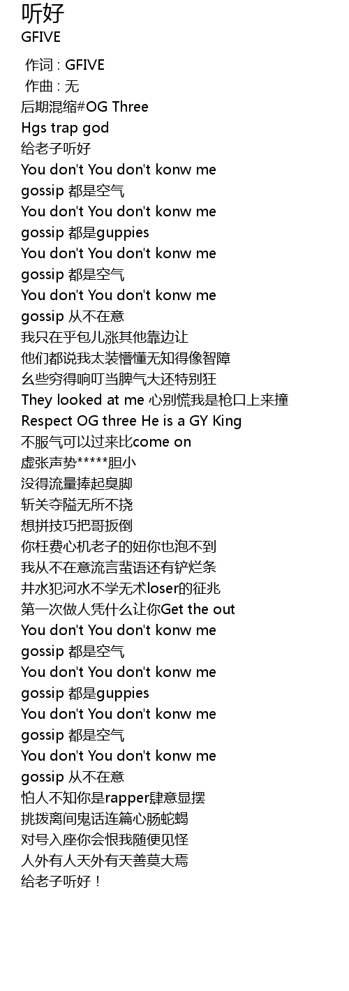 | [01:32.363] | pà rén bù zhī nǐ shì rapper sì yì xiǎn bǎi |