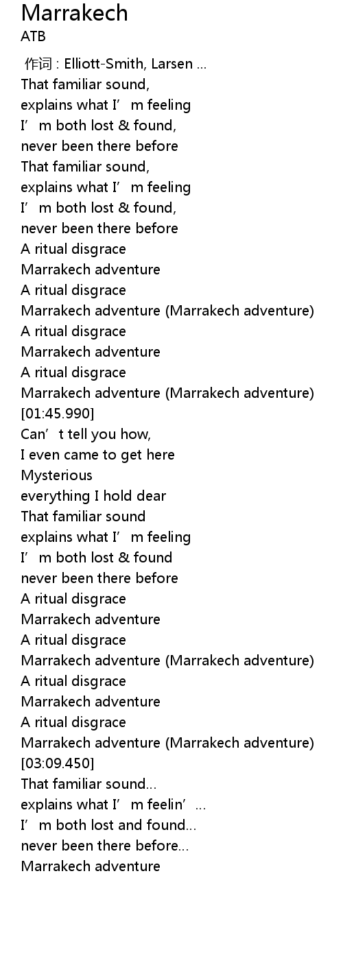 | [01:40.390] | Marrakech adventure (Marrakech adventure) |