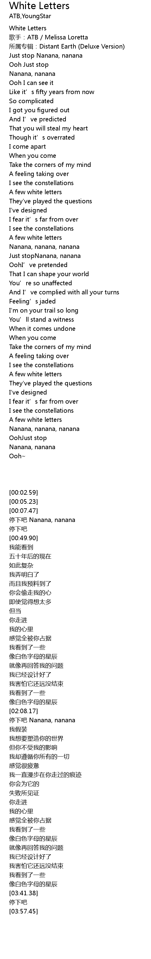 | [00:02.59] | White Letters |