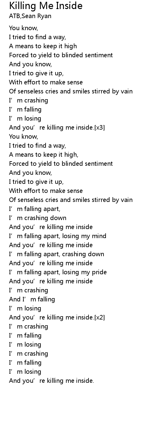 | And you' re killing me inside. x3 | |