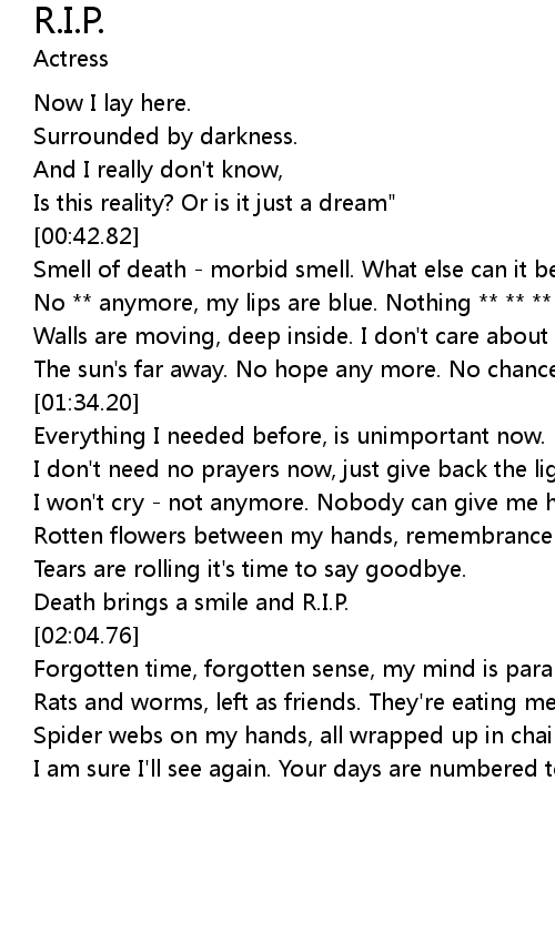 | [02:02.01] | Death brings a smile and R.I.P. |