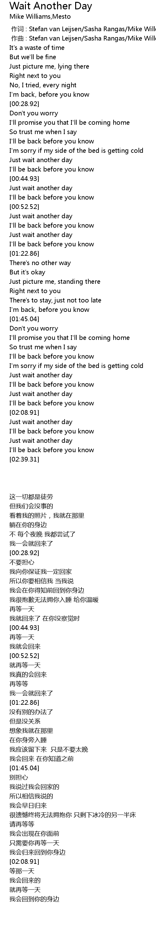 | [01:39.08] | 我应该留下来 只是不要太晚 |