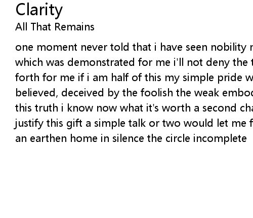 one moment never told that i have seen nobility my life's been molded by that which was demonstrated for me i'll not deny the truth of right and wrong set forth for me if i am half of this my simple pride will be released never believed, deceived by the foolish the weak embody lies here in lies the heart of this truth i know now what it's worth a second chance at this or reason to justify this gift a simple talk or two would let me feel more at ease six feet an earthen home in silence the circle incomplete |