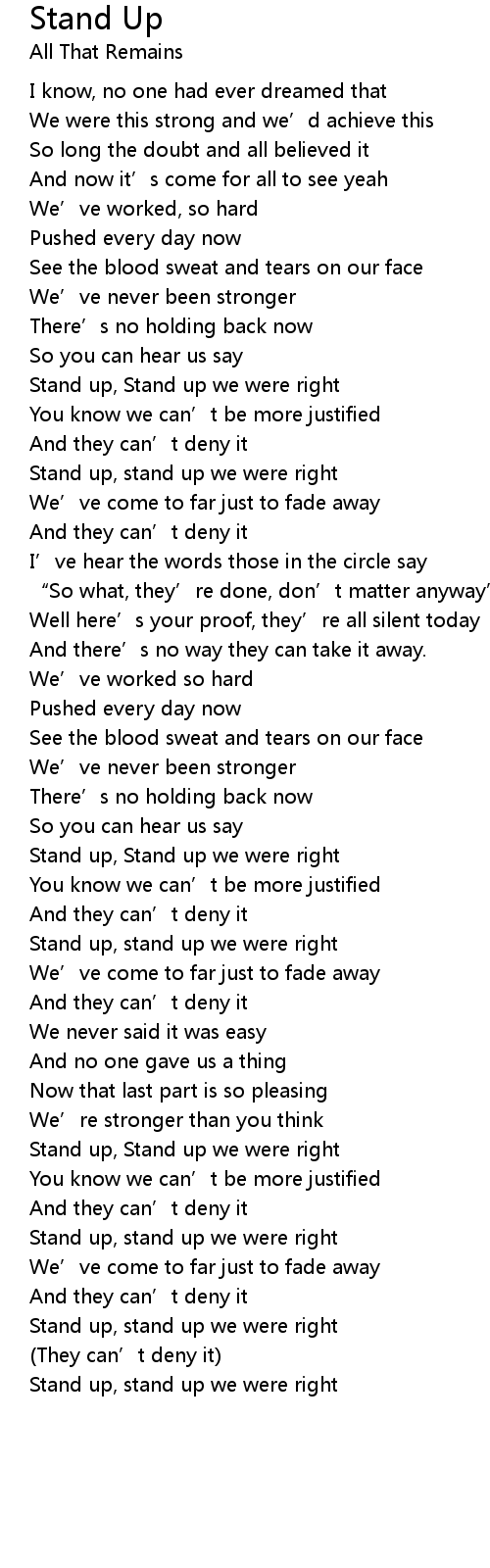 | Stand up, Stand up we were right | |