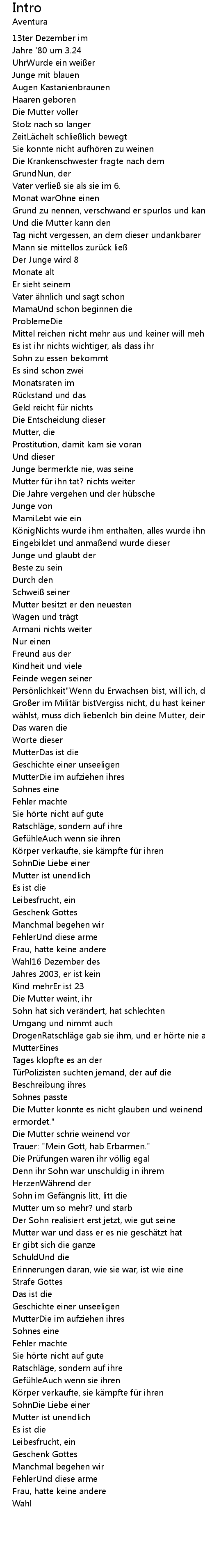 | Die Mutter konnte es nicht glauben und weinend sagte sie: " Mein Sohn hat niemand ermordet." | |