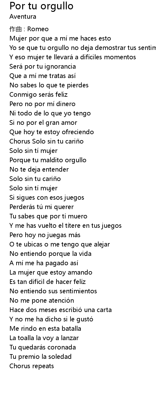 | Yo se que tu orgullo no deja demostrar tus sentimientos | |