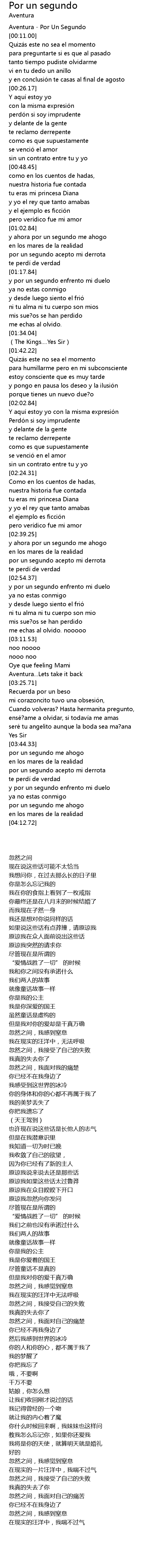 | [00:02.00] | Aventura - Por Un Segundo |