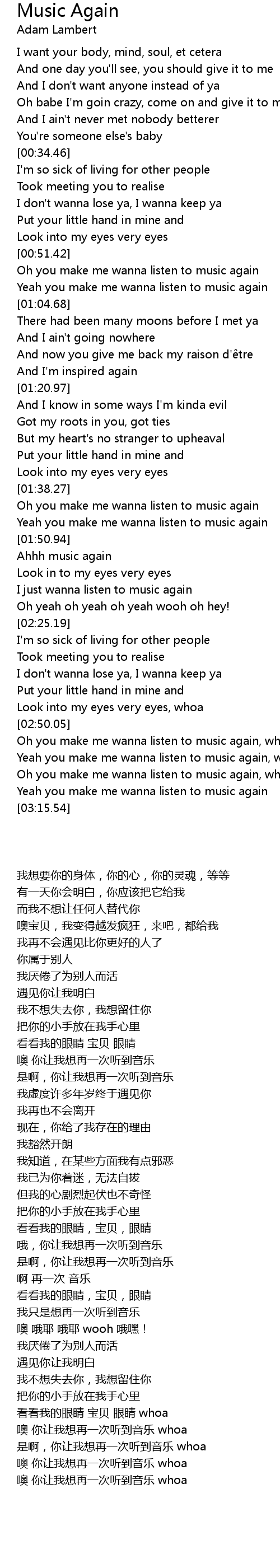 | [03:02.70] | 噢 你让我想再一次听到音乐 whoa |