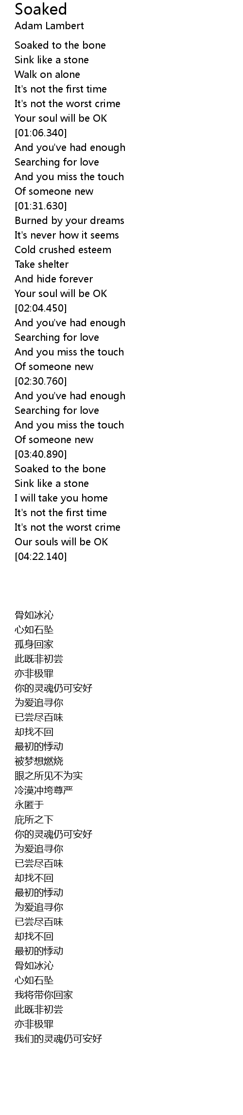 | [00:30.770] | Soaked to the bone |