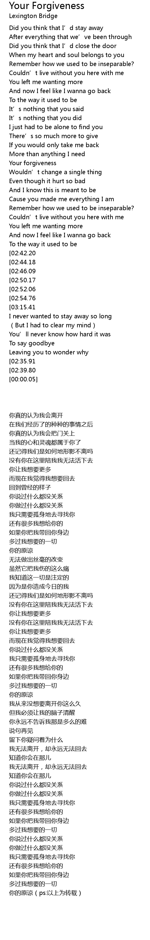 | [03:15.41] | 你的原谅(ps:以上为转载) |