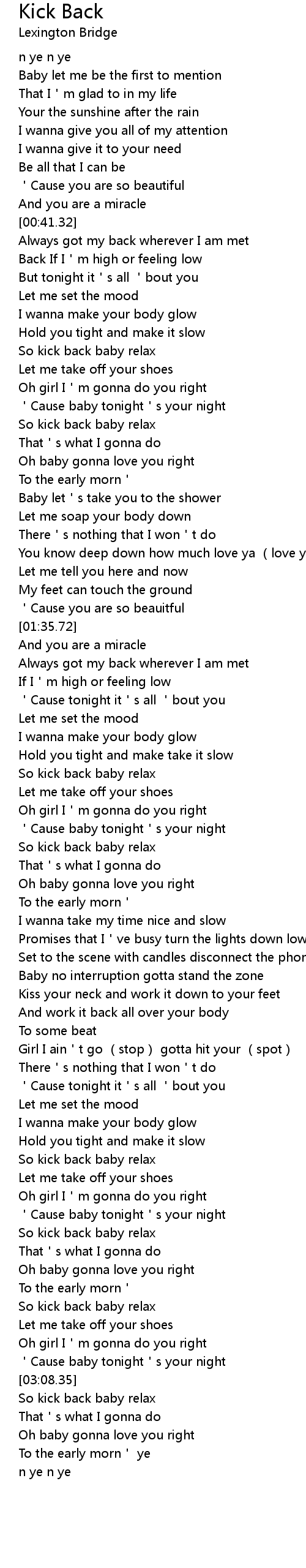 | [02:22.61] | Kiss your neck and work it down to your feet |