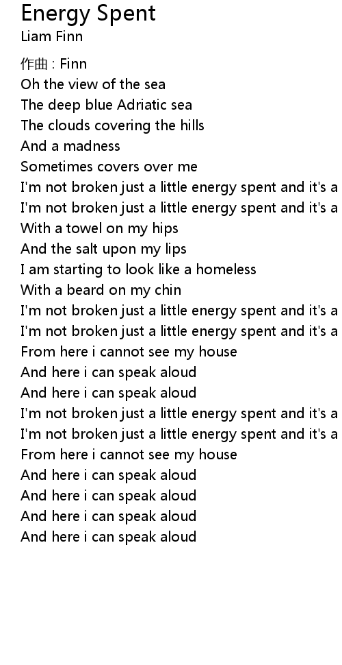 | I'm not broken just a little energy spent and it's a long way from here | |
