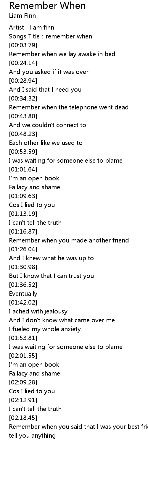 | [00:02.23] | Songs Title: remember when |