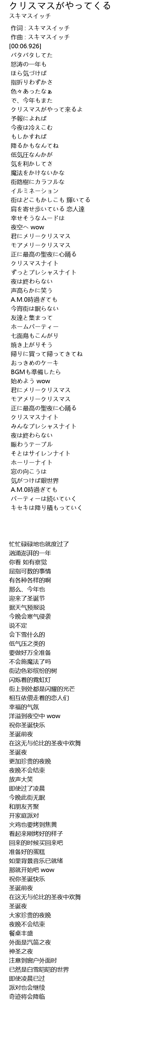 | [00:53.121] | クリスマスがやって来るよ |