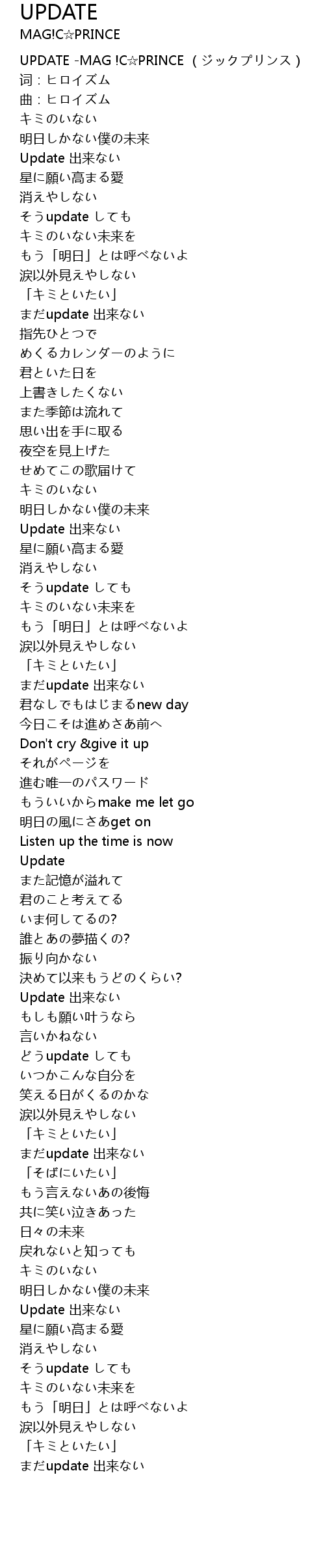 | [00:00.00] | UPDATE -MAG !C☆PRINCE (ジックプリンス) |