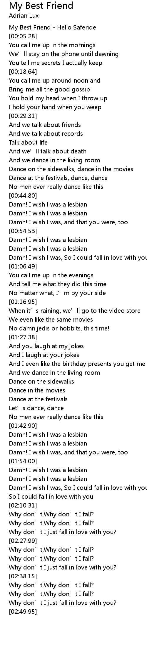 | [00:45.70] | Damn! I wish I was a lesbian |