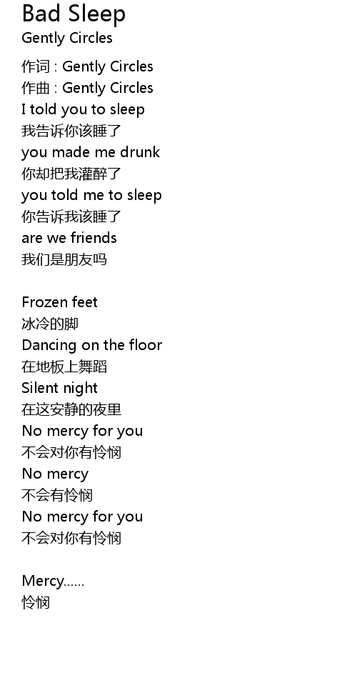 | 歌曲 | Bad Sleep |